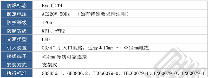> 適用于ⅡA、ⅡB、ⅡC 類爆炸性氣體環境。