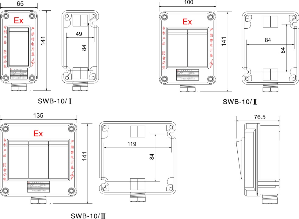 * 本產(chǎn)品為復(fù)合型結(jié)構(gòu),增安型外殼,開(kāi)關(guān)芯子采用膠封工藝,可通用于粉塵防爆;